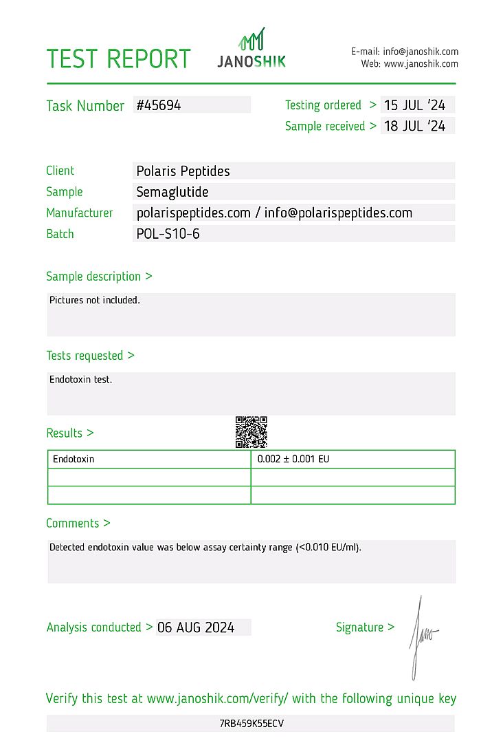 Endotoxin: 0.002 ≤ 0.001 EU